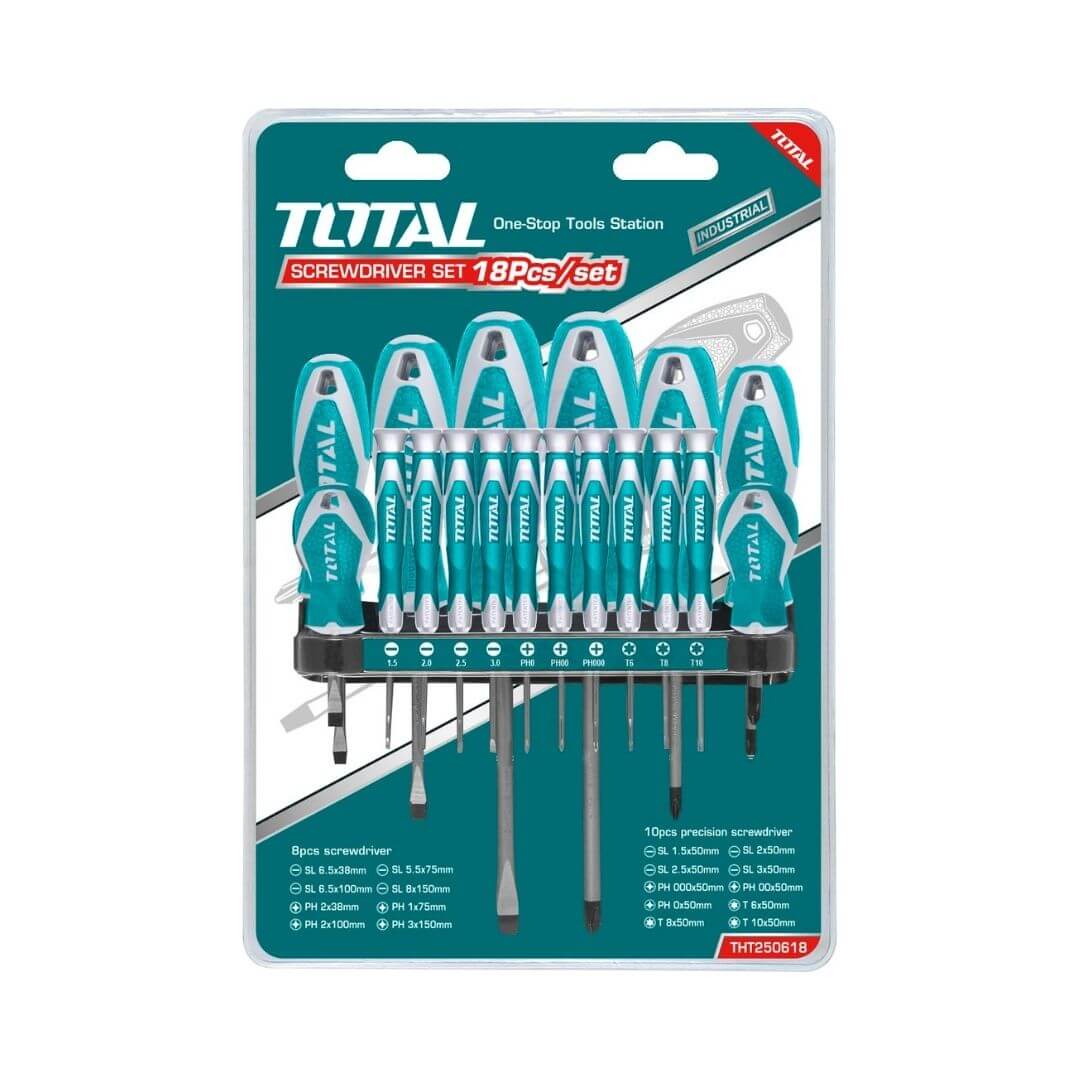 طقم مفكات توتال 18 قطعة متنوعة صلب THT250618 توتال تولز