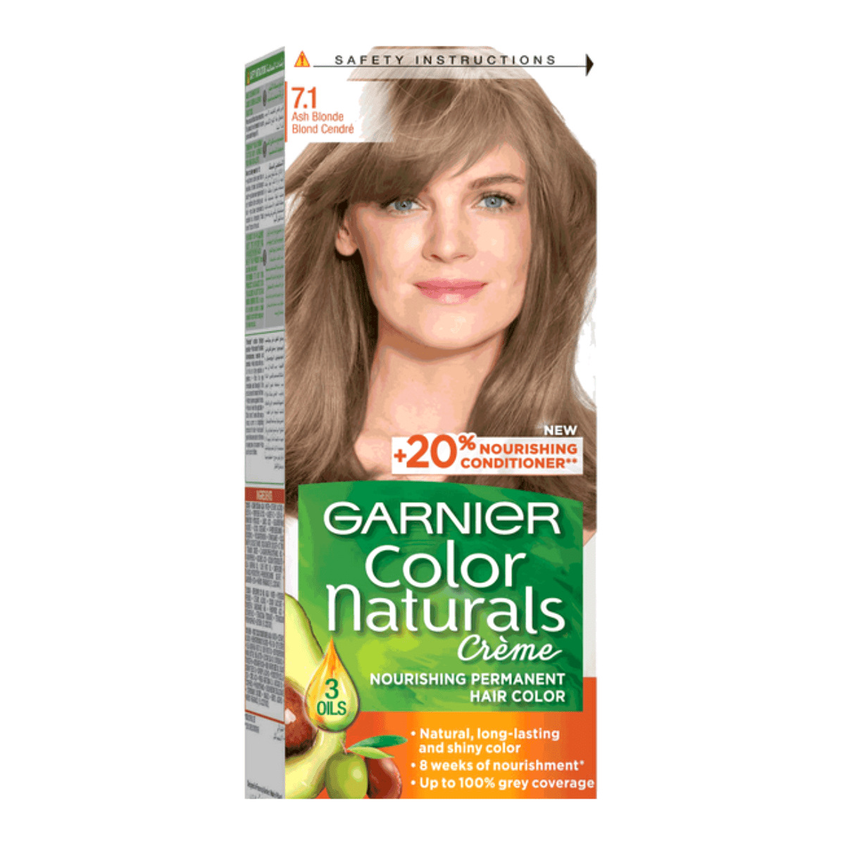 غارنييه كولور ناتشورالز صبغة شعر دائمة مغذية مع بلسم أشقر رمادي 7.1
